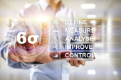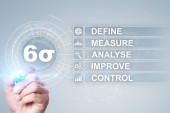 Zdjęcie "Six Sigma, Lean manufacturing, kontrola jakości i koncepcja poprawy procesów przemysłowych." może być wykorzystywane do celów osobistych i komercyjnych zgodnie z warunkami zakupionej licencji Royalty-free. Obraz jest dostępny do pobrania w jakości wysokiej rozdzielczości do 5760x3840.