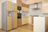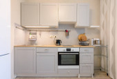 Anapa, Rosja - 23 sierpnia 2020: Gładka kuchnia z bliska we wnętrzu kuchni