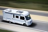 Minibus na drodze w pagórkowatym obszarze w letni dzień