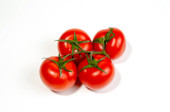 Pomidory wiśniowe, kilka kawałków z kroplami wilgoci, zbliżenie