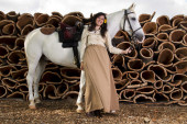 piękna młoda kobieta z brązowy koń