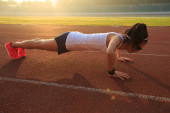 fitness na świeżym powietrzu, publiczne boisko sportowe. Młoda sportowiec ćwiczy na ulicy.,