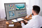 Zdjęcie "Edytor wideo lub projektant za pomocą oprogramowania do edycji na komputerze" może być wykorzystywane do celów osobistych i komercyjnych zgodnie z warunkami zakupionej licencji Royalty-free. Obraz jest dostępny do pobrania w jakości wysokiej rozdzielczości do 5760x3840.