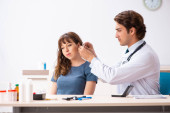 Konsultacje, kobieta w bólu