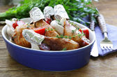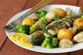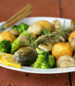 pieczony pstrąg ryba z warzywami w cytryna na talerzu