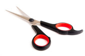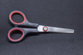 nowe nożyce z czarne i czerwone plastikowe uchwyty, cięcia papieru