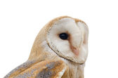 Piękne wspólne sowa stodoła na białym tle, zbliżenie