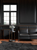 Zdjęcie "Czarne wnętrze z sofą i wystrojem." może być wykorzystywane do celów osobistych i komercyjnych zgodnie z warunkami zakupionej licencji Royalty-free. Obraz jest dostępny do pobrania w jakości wysokiej rozdzielczości do 5760x3840.