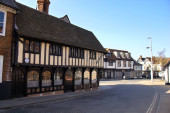 Stary, czarno-biały budynek z drewna w Ipswich, Wielka Brytania