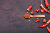 Zdjęcie "Drewniana deska do krojenia z pieprzem w drewnianej łyżeczce i czerwone chili szalotki czosnek bazylia kolendra liści pomidory rozłożone z worków leżały na blat stołu - widok z góry." może być wykorzystywane do celów osobistych i komercyjnych zgodnie z warunkami zakupionej licencji Royalty-free. Obraz jest dostępny do pobrania w jakości wysokiej rozdzielczości do 5760x3840.