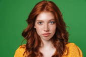 Zdjęcie "Wizerunek imbir zadowolony dziewczyna pozowanie i patrząc na bok izolowane na zielonym tle" może być wykorzystywane do celów osobistych i komercyjnych zgodnie z warunkami zakupionej licencji Royalty-free. Obraz jest dostępny do pobrania w jakości wysokiej rozdzielczości do 5760x3840.