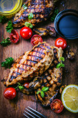 Grillowane piersi kurczaka na tablicy rzeźnika zamknąć.