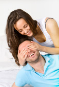 uśmiechający się zaskakujące kobieta mężczyzna z obrączki w domu