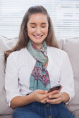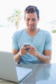 przypadkowy mężczyzna czytanie wiadomości tekstowych na kanapie