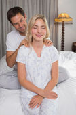 uśmiechnięty mężczyzna młody Masowanie ramion kobiety