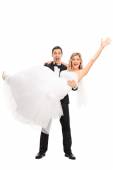 Zdjęcie "wesoły narzeczonego prowadzenia" może być wykorzystywane do celów osobistych i komercyjnych zgodnie z warunkami zakupionej licencji Royalty-free. Obraz jest dostępny do pobrania w jakości wysokiej rozdzielczości do 5760x3840.