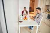 Zdjęcie "Radosna pani serwująca omlet mężowi" może być wykorzystywane do celów osobistych i komercyjnych zgodnie z warunkami zakupionej licencji Royalty-free. Obraz jest dostępny do pobrania w jakości wysokiej rozdzielczości do 5760x3840.