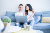 Zdjęcie "Radosna para oglądająca komedię na laptopie" może być wykorzystywane do celów osobistych i komercyjnych zgodnie z warunkami zakupionej licencji Royalty-free. Obraz jest dostępny do pobrania w jakości wysokiej rozdzielczości do 5760x3840.