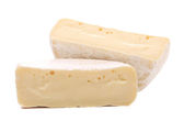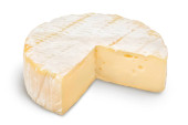 Ser Camembert izolowany na białym tle ze ścieżką wycinania i pełną głębią pola