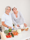 szczęśliwa para dojrzałych przygotowywania potraw w kuchni