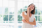 zaskoczony kobieta patrząc w dokumencie z człowiekiem w kuchni
