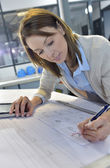 Zdjęcie "kobieta pracuje na plany w biurze" może być wykorzystywane do celów osobistych i komercyjnych zgodnie z warunkami zakupionej licencji Royalty-free. Obraz jest dostępny do pobrania w jakości wysokiej rozdzielczości do 5760x3840.