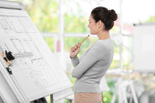 Zdjęcie "kobieta pracuje na plany z kolega w tle" może być wykorzystywane do celów osobistych i komercyjnych zgodnie z warunkami zakupionej licencji Royalty-free. Obraz jest dostępny do pobrania w jakości wysokiej rozdzielczości do 5760x3840.