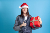 Zdjęcie "uśmiechnięta kobieta z prezentem Buty w ręku i wskazując na nią w swetrze z płatkami śniegu i kapelusz Świętego Mikołaja na czerwonym tle" może być wykorzystywane do celów osobistych i komercyjnych zgodnie z warunkami zakupionej licencji Royalty-free. Obraz jest dostępny do pobrania w jakości wysokiej rozdzielczości do 5760x3840.