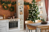 Zdjęcie "Wnętrze nowoczesnej kuchni urządzone na Boże Narodzenie" może być wykorzystywane do celów osobistych i komercyjnych zgodnie z warunkami zakupionej licencji Royalty-free. Obraz jest dostępny do pobrania w jakości wysokiej rozdzielczości do 5760x3840.