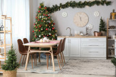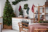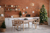 Wnętrze nowoczesnej kuchni urządzone na Boże Narodzenie