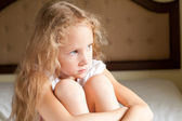 dość leniwa bezczynna dziewczynka z długimi włosami oglądanie telewizji leżącej w sypialni