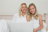 Zdjęcie "matka i córka korzysta z laptopa w łóżku" może być wykorzystywane do celów osobistych i komercyjnych zgodnie z warunkami zakupionej licencji Royalty-free. Obraz jest dostępny do pobrania w jakości wysokiej rozdzielczości do 5760x3840.