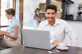 portret uśmiechający się biznesmen z kolegami w spotkaniu