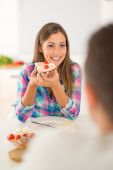 przycięte człowiek daje szczęśliwą kobietą pudełko