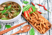 Chrupiąca wieprzowina, przystawka tajskiego jedzenia.