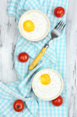 Zdjęcie "jajka pieczone w tabeli z bliska" może być wykorzystywane do celów osobistych i komercyjnych zgodnie z warunkami zakupionej licencji Royalty-free. Obraz jest dostępny do pobrania w jakości wysokiej rozdzielczości do 5760x3840.