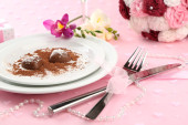 zestaw cukierki czekoladowe na stole na brązowym tle