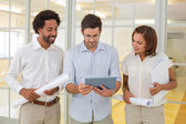 współpracownikami przy użyciu cyfrowego tabletu z plany