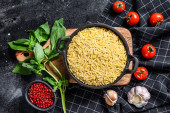 Zdjęcie "Składniki tradycyjnego włoskiego makaronu alla carbonara. Niegotowane spaghetti, bekon pancetta, ser parmezan, jajko. Czarne tło. Widok z góry." może być wykorzystywane do celów osobistych i komercyjnych zgodnie z warunkami zakupionej licencji Royalty-free. Obraz jest dostępny do pobrania w jakości wysokiej rozdzielczości do 5760x3840.