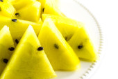 Zdjęcie "Kawałki żółtego arbuza na białym dysku na białym tle" może być wykorzystywane do celów osobistych i komercyjnych zgodnie z warunkami zakupionej licencji Royalty-free. Obraz jest dostępny do pobrania w jakości wysokiej rozdzielczości do 5760x3840.
