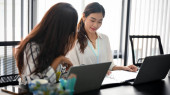 Zdjęcie "Dwie profesjonalne bizneswoman omawiając projekt razem w biurze " może być wykorzystywane do celów osobistych i komercyjnych zgodnie z warunkami zakupionej licencji Royalty-free. Obraz jest dostępny do pobrania w jakości wysokiej rozdzielczości do 5760x3840.