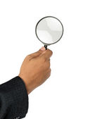 Szkło powiększające w dłoni izolowane na białym tle