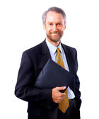 biznes człowiek stojący biały na białym tle na