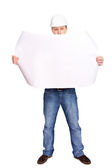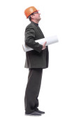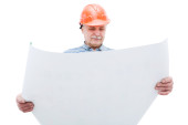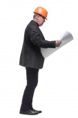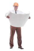 w pełnym wzroście. doświadczony starszy inżynier z rysunkami