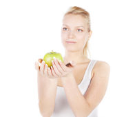 Zdjęcie "Młoda blondynka z jabłkiem" może być wykorzystywane do celów osobistych i komercyjnych zgodnie z warunkami zakupionej licencji Royalty-free. Obraz jest dostępny do pobrania w jakości wysokiej rozdzielczości do 5760x3840.