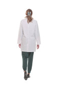 widok z tyłu. kobieta lekarz patrząc na biały pusty ekran
