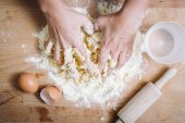 matka i córka w kuchni przygotowują jedzenie z mąki i rysują serca na mące