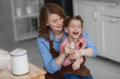 Zdjęcie "mama i córka w kuchni głupcem wokół i śmiać się przy stole w kuchni" może być wykorzystywane do celów osobistych i komercyjnych zgodnie z warunkami zakupionej licencji Royalty-free. Obraz jest dostępny do pobrania w jakości wysokiej rozdzielczości do 5760x3840.