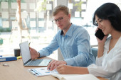 Zdjęcie "Udane hipsterzy studenci za pomocą urządzeń smartfona do połączenia do obsługi klienta i omówić połączenie bezprzewodowe, szczęśliwy mężczyzna i kobieta rozmawiają przez komórki podczas oglądania webinarium online na laptopie" może być wykorzystywane do celów osobistych i komercyjnych zgodnie z warunkami zakupionej licencji Royalty-free. Obraz jest dostępny do pobrania w jakości wysokiej rozdzielczości do 5760x3840.