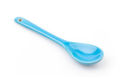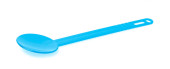 Niebieska plastikowa łyżka izolowana na białym tle